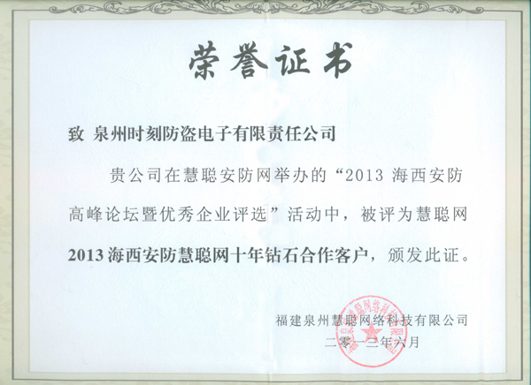 Warmly celebrate our company won the "2013 Haixi security technology leading enterprise" and "2013 sea Xi'an anti HC ten years diamond clients" honor