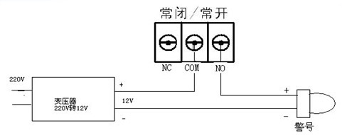 应正常接好,警号正极+ 接主板+12v,警号负极- 接主板常开端,主板公共端用短路线直接接负极端GND。