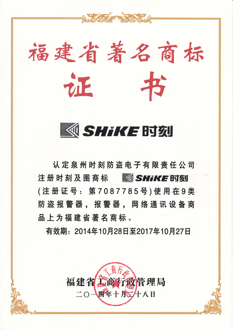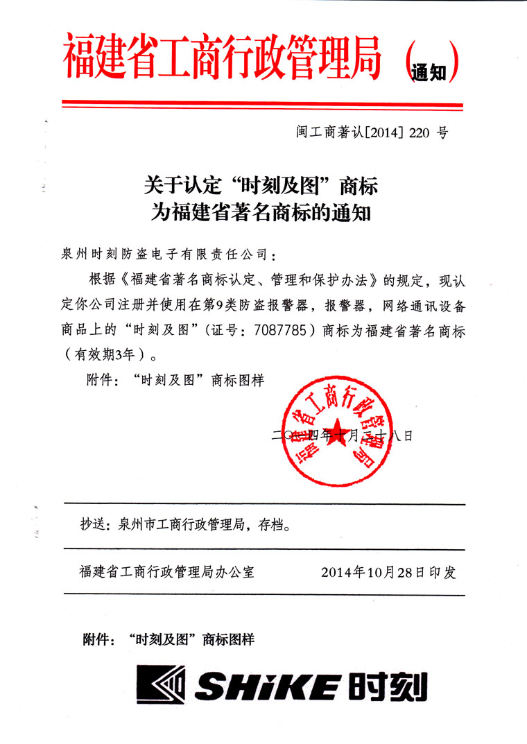 热烈庆祝我司“时刻商标”通过福建省工商管理局认定为福建省著名商标。